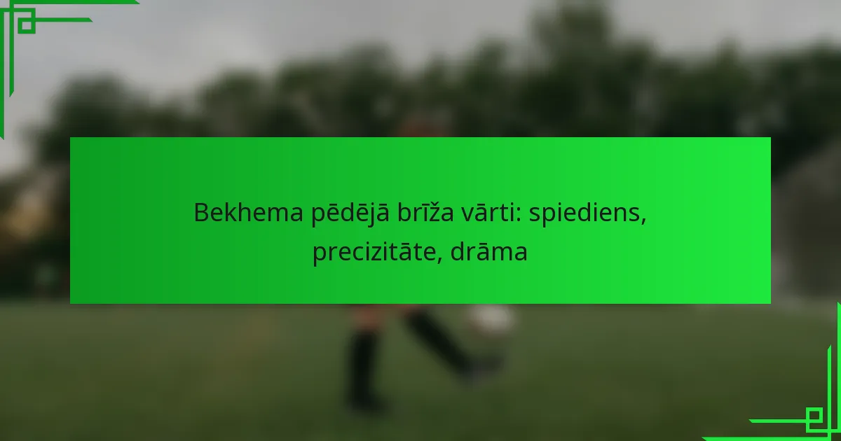 Deivida Bekhema pēdējā brīža vārti, gūti svarīgā spēlē, ietvēra intensīvo spiedienu un drāmu augsta riska futbolā. Šis brīdis ne tikai parādīja Bekhema precizitāti, bet arī izcēla spēles nozīmīgumu turnīra kontekstā.